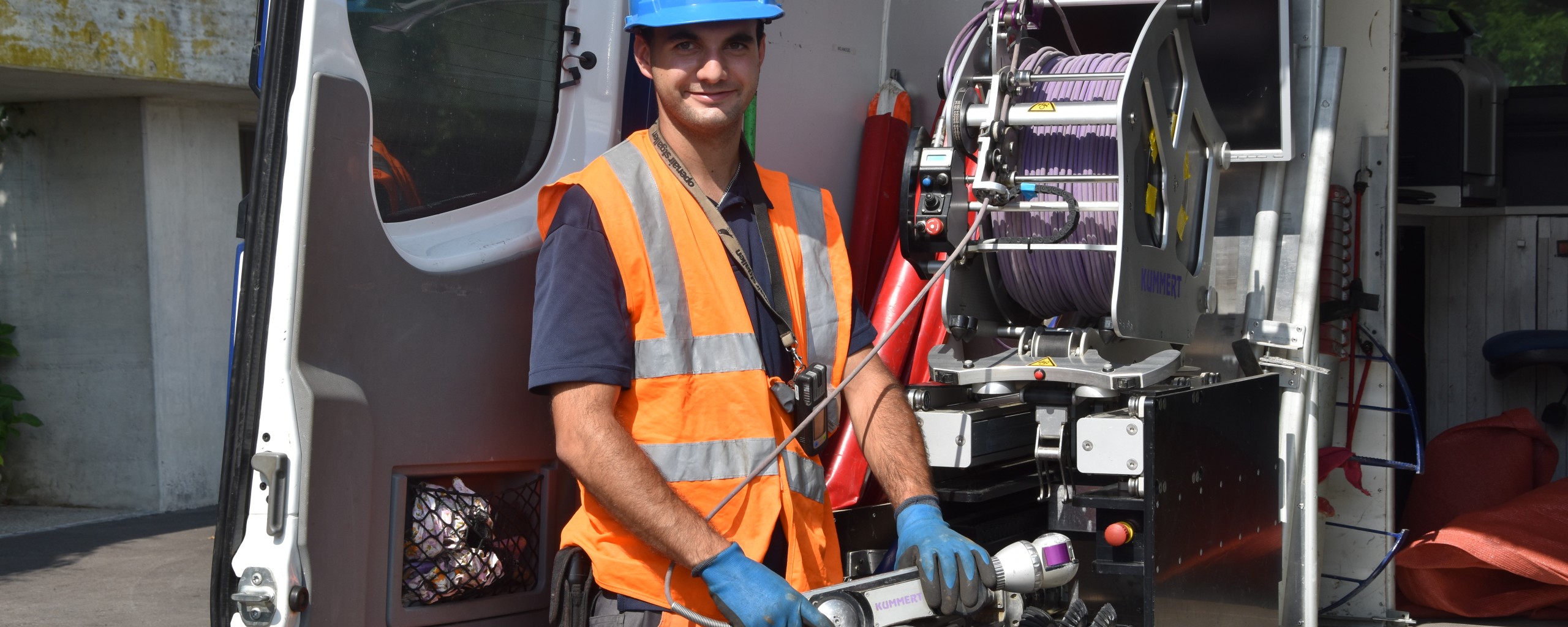 Entwässerungstechnologinnen und Entwässerungstechnologen reinigen und entleeren Entwässerungsanlagen. Dazu gehören unter anderem Abwasser- oder Regenwasserleitungen oder Gruben. Sie kontrollieren die Anlagen mit Kameras, erfassen Schäden und reparieren kaputte Bauteile. Ausserdem schlagen die Berufsleute Sanierungen vor.