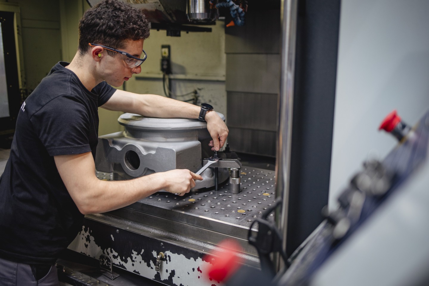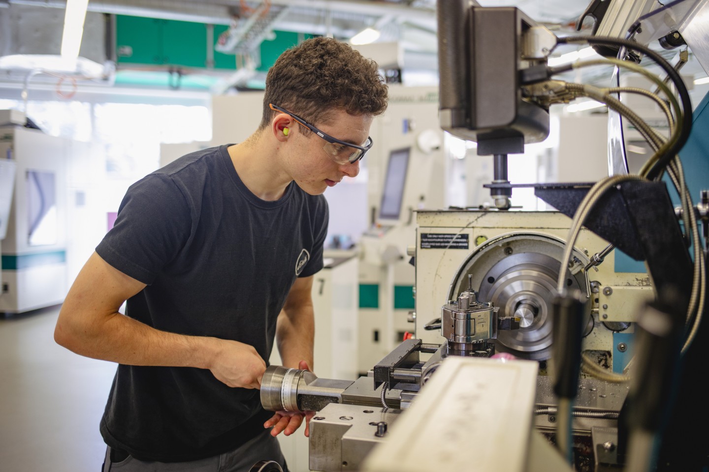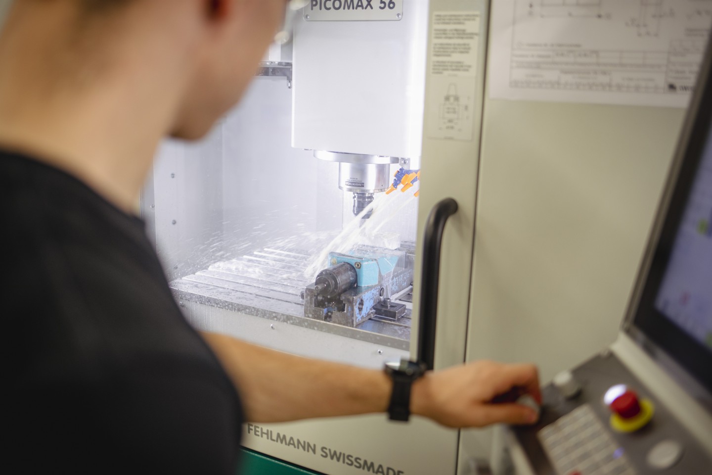 «"Mein Beruf ist sehr vielseitig, weil ich mit verschiedensten Materialien und Maschinen arbeiten darf. Ich lese Zeichnungen, programmiere, fertige, messe und baue zusammen. Besonders die Arbeit mit den Hightech-Maschinen macht mir Spass".»