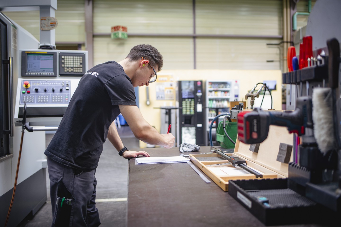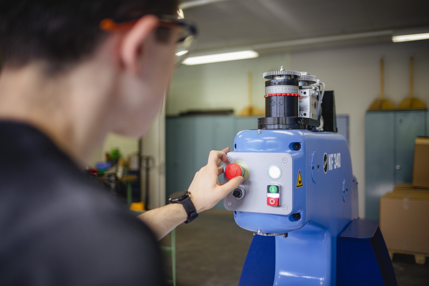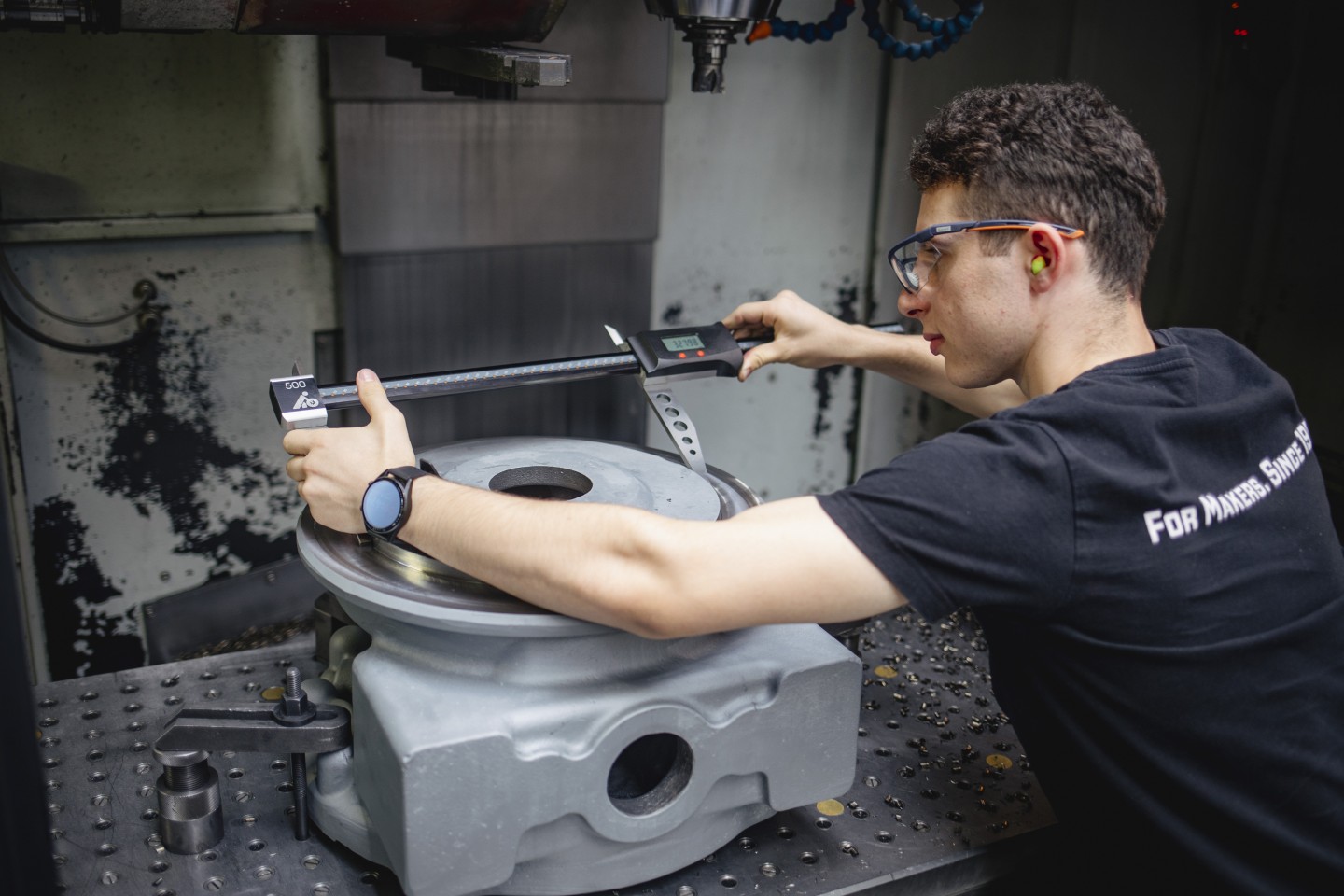 «"Mein Beruf ist sehr vielseitig, weil ich mit verschiedensten Materialien und Maschinen arbeiten darf. Ich lese Zeichnungen, programmiere, fertige, messe und baue zusammen. Besonders die Arbeit mit den Hightech-Maschinen macht mir Spass".»
