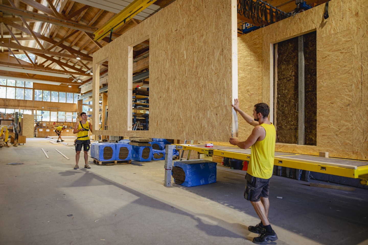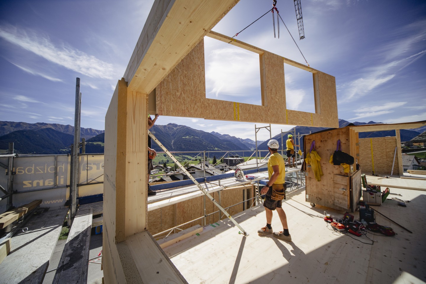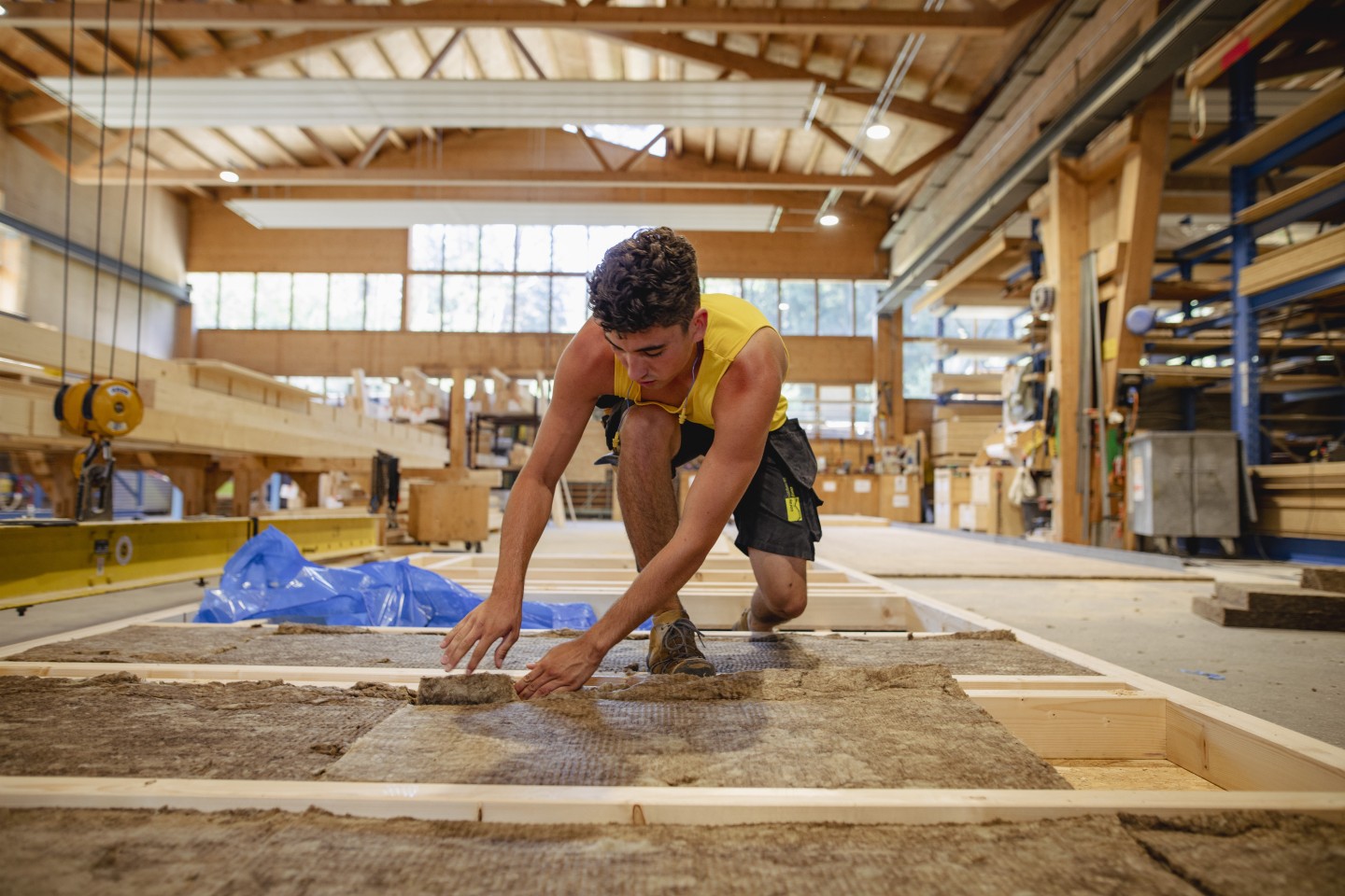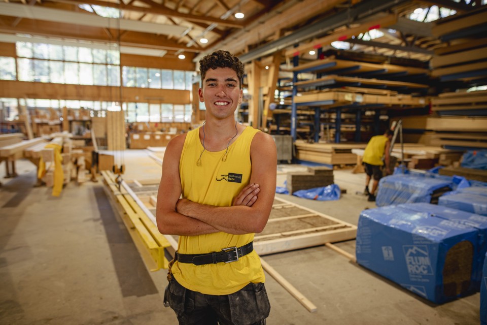 Zimmerinnen und Zimmermänner erstellen und reparieren Holzbauwerke. Sie richten Dachstühle auf, bauen Holzhäuser, Scheunen, Sporthallen, Brücken und Fassaden. Sie konstruieren Treppen und Türen, täfern Wände und Decken, verlegen Böden, setzen Fenster ein und isolieren Häuser.