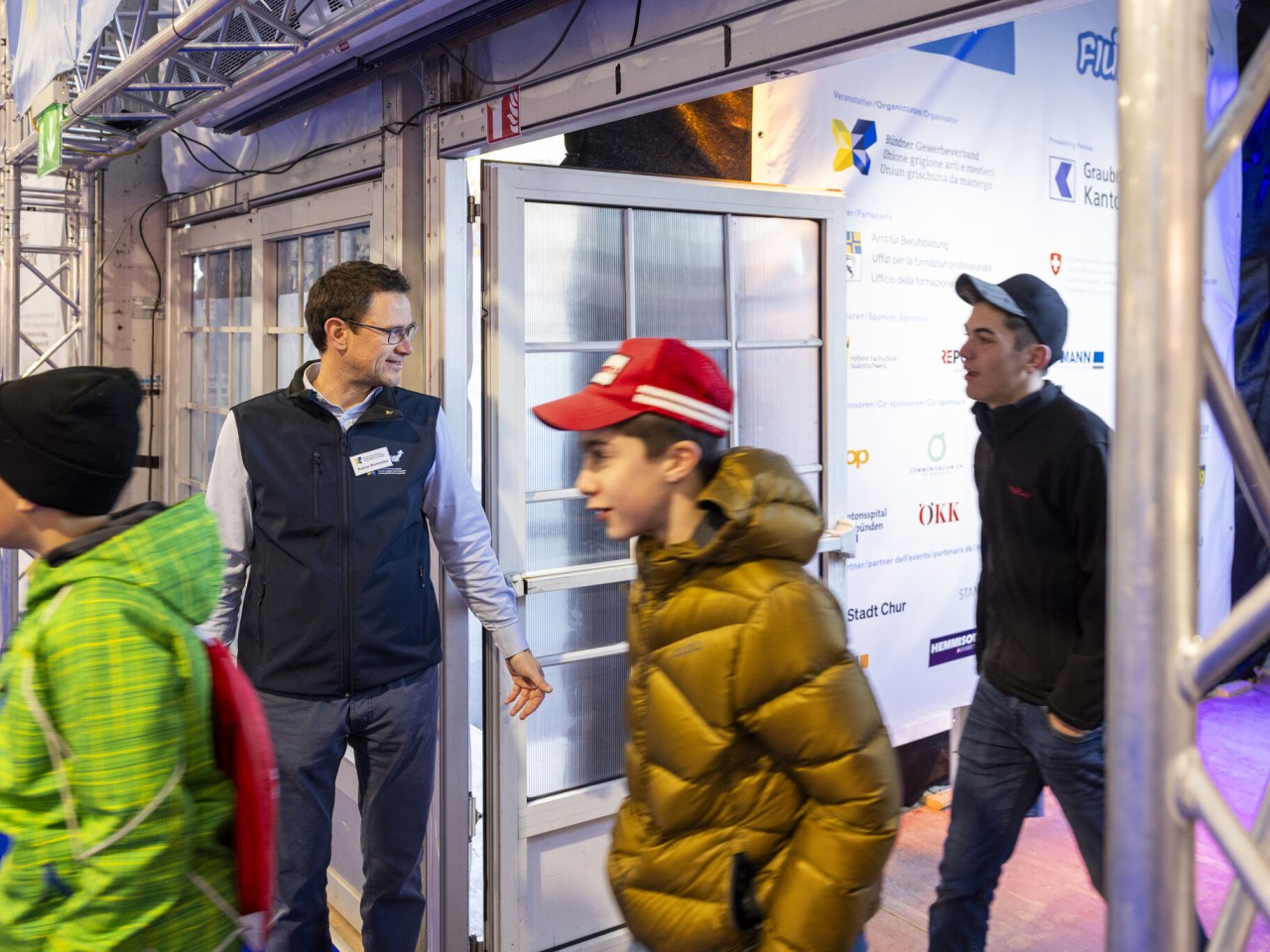 Heute Mittwoch ist in der Stadthalle Chur der Startschuss zur achten Bündner Berufsausstellung Fiutscher erfolgt. Punkt 8.00 Uhr öffnete Bündner Gewerbeverband-Direktor Maurus Blumenthal die Türen. Zahlreiche Schulklassen aus dem ganzen Kanton nutzten darauf den ersten Tag, um in die Berufswelt einzutauchen.